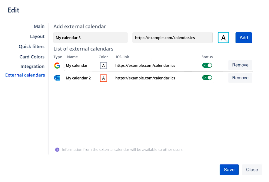 Enter the URL in the designated input field.Enter the name of the calendar.