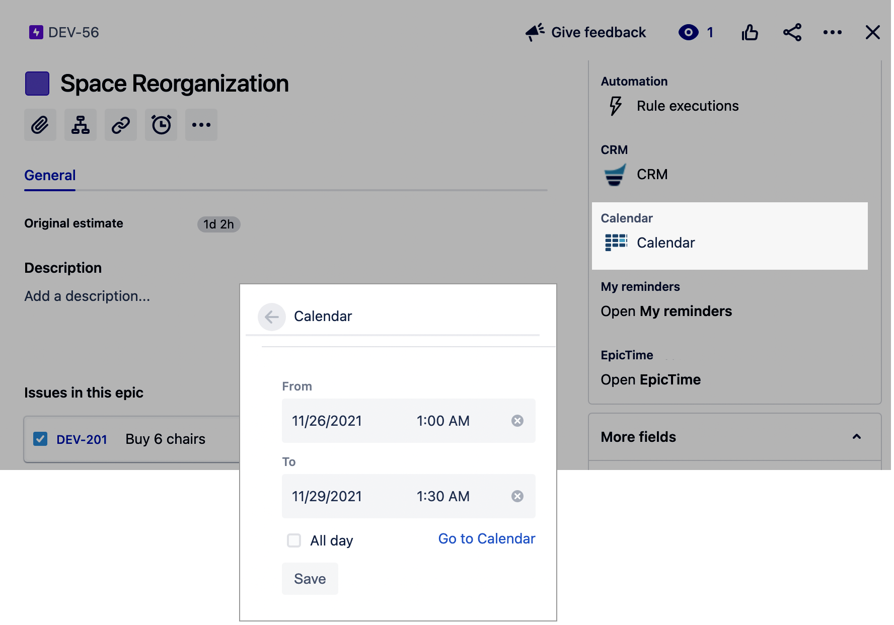 This mode will require you to select one or two Jira date fields as time frames. Suitable for full-day issues.