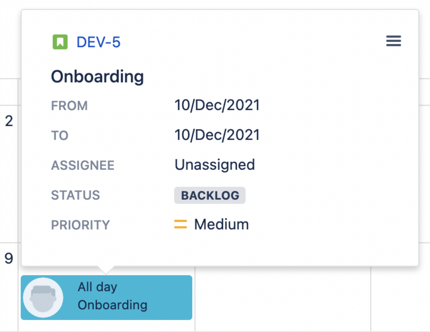 This default mode uses the fields that you can find in any issue in the Calendar section: