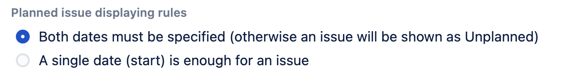 option 1: only issues with fully specified timeframes (start and end dates are filled) will be visible within planned, other (start/end/both are empty) are displayed within the Unplanned Issues section.
