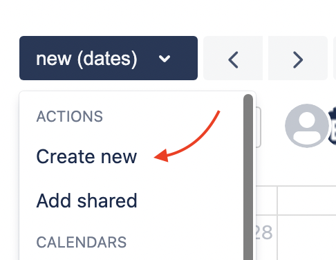 To create a calendar, navigate to Apps → Calendar and select Add calendar → Create New
