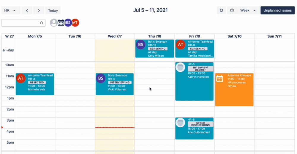 A user can perform a search within the section and drag-and-drop the unplanned issues on the calendar grid that makes them planned.