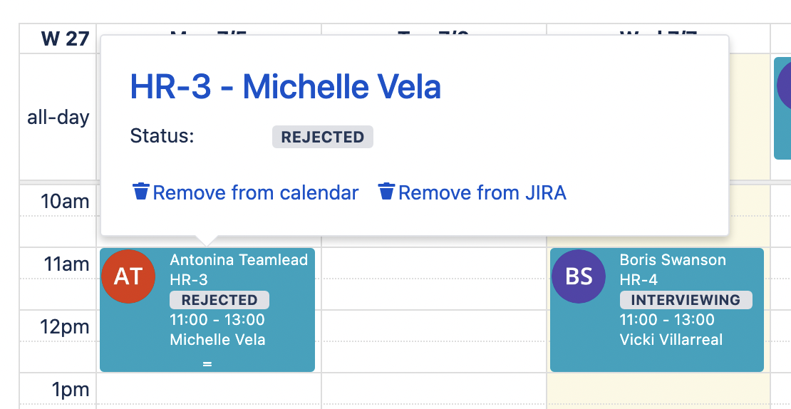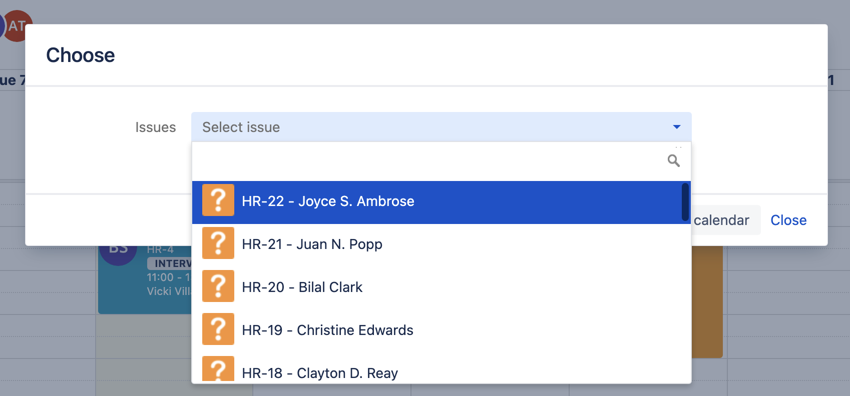 A user can call the issue creation screen from the calendar interface. Select the timeframes the issue should be put on and click "New issue". If the calendar-relevant fields are on the creation screen, they will be auto-populated according to the selected timeframes.