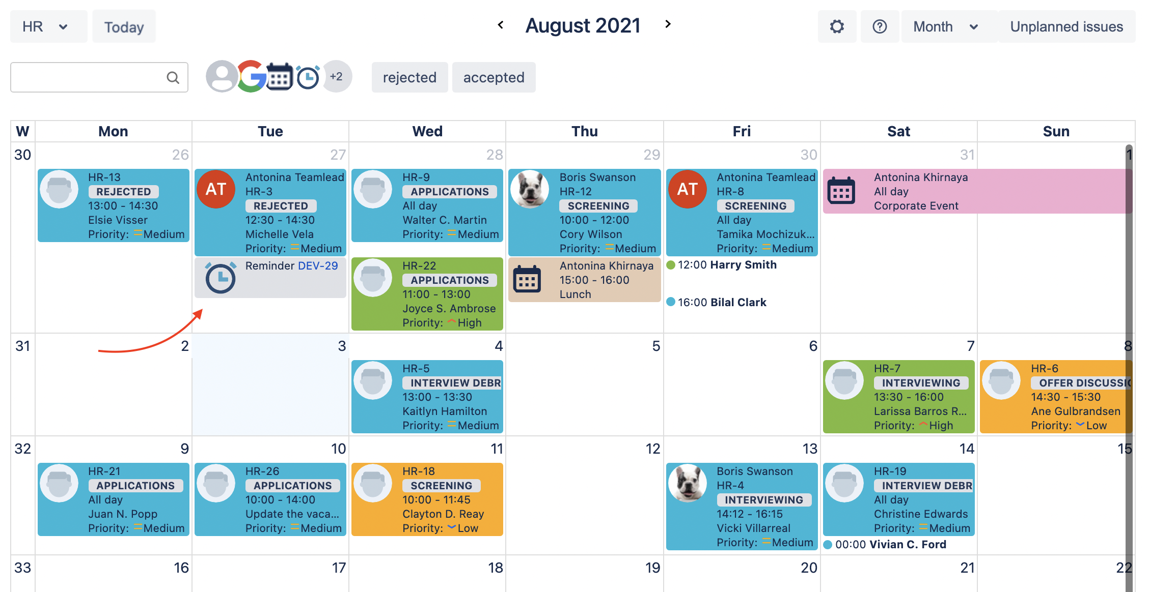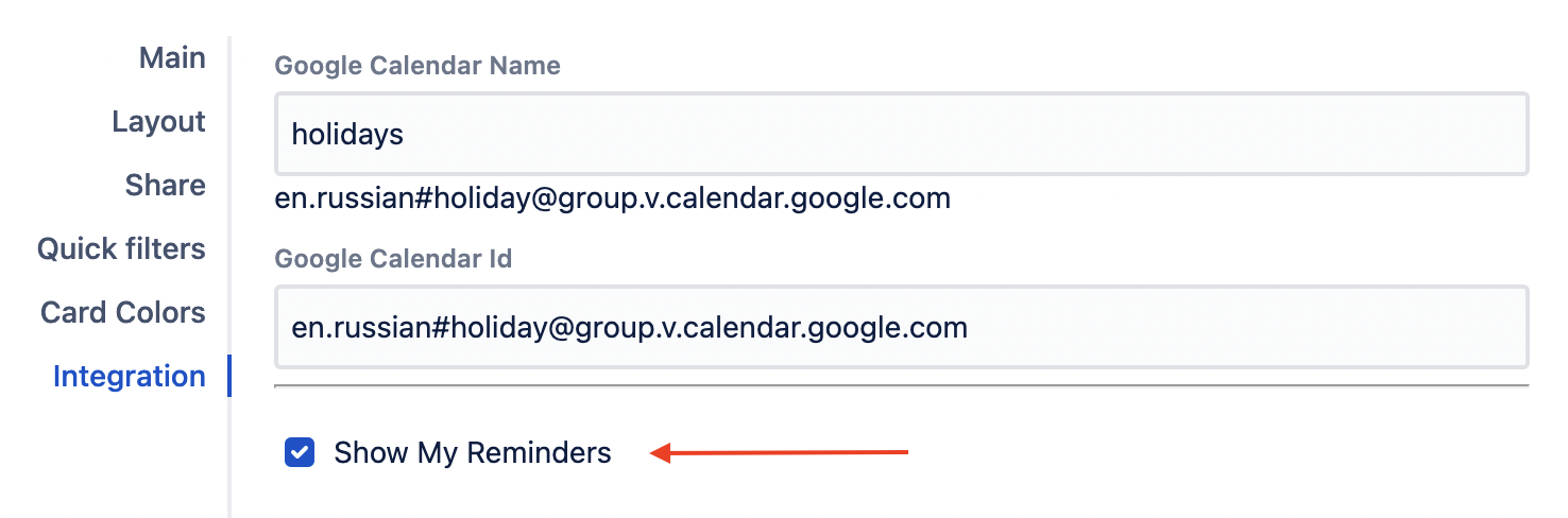 In case you use Teamlead Cloud Reminder, you can set up a calendar to display reminders of a current user as a special type of events within a calendar.