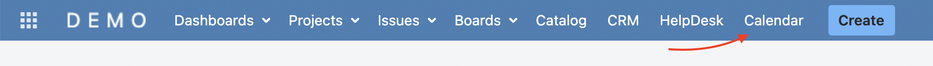 If you were granted the relevant permissions, the Calendar section becomes available in the upper Jira menu: