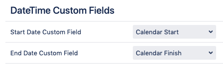 Each calendar entry should have a start date&time and end date&time to be displayed within a calendar view. This global setting allows you to select the pair of fields with Date Picker or Date-Time Picker type as the default options that will be suggested to a user during a new calendar creation. Adding these fields to issue screens is not necessary.