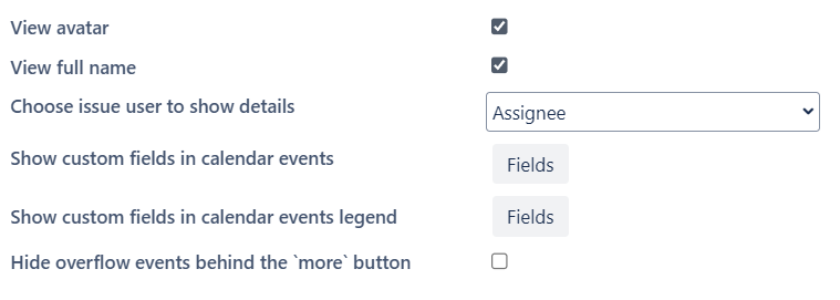 Show My reminders – check if a user should be able to browse their reminders (the Reminder for Jira app) within the calendar.