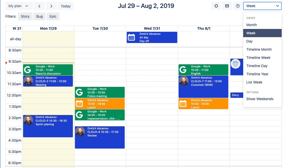 Recurring non-Jira events. Now you can schedule non-Jira events on a regular base.