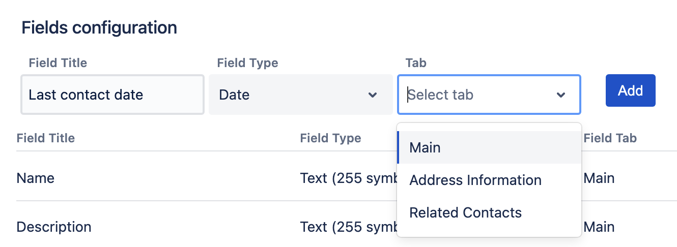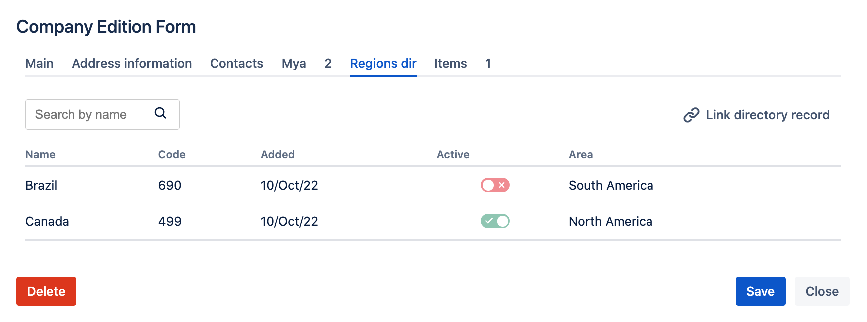 CRM Contacts | A read-only attribute that should be added to the Company card. It is only available in the Companies directory configuration and displays all contacts linked to the company. ![]() |