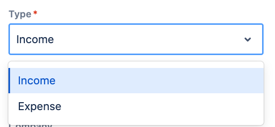 Type | Mandatory attribute that defines the type of transaction's flow. Two options are available: Income (set as default) and Expense. When type of transaction is Expense, subtract sign will be added automatically. ![]() | ⛔ | ⛔ |