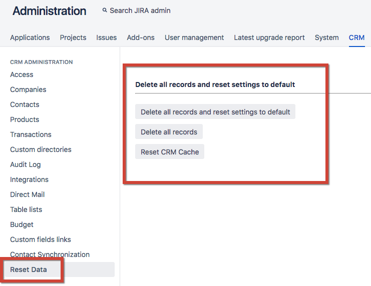 Reset CRM Cache:CRM has a data cache for fast searching. It is used in transactions and exports. The button is needed to restore the cache if it has collapsed.
