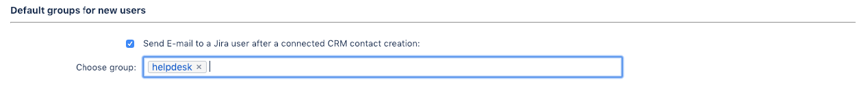New JIRA users created via CRM Contacts synchronization will be added to selected groups by default: