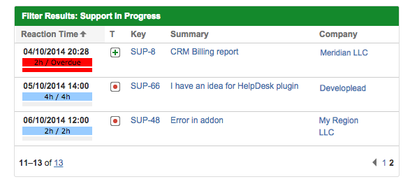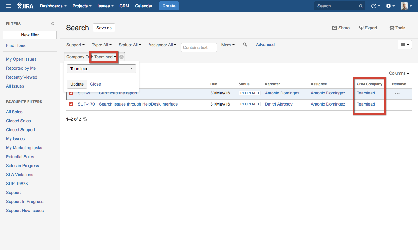 You can also display contacts and companies in the columns of your JIRA issue navigator:
