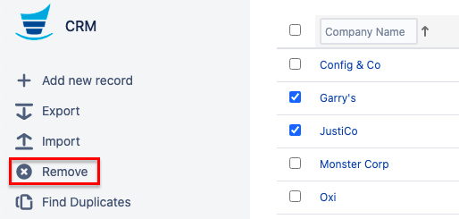 Select one or several entries you want to delete and select the 'Remove' action in the left menu or in the context menu of the particular entry. Not that you won't see the 'Remove' action in the left menu until you select at least one entry.