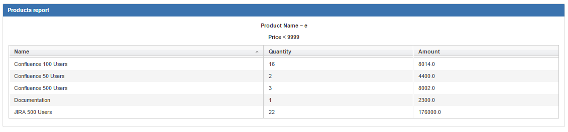 Also you can add some conditions to the report. Products attributes are taken from "Products & Services" directory settings. To add one more condition click on "+", the conditions will be added with 'AND' operator.