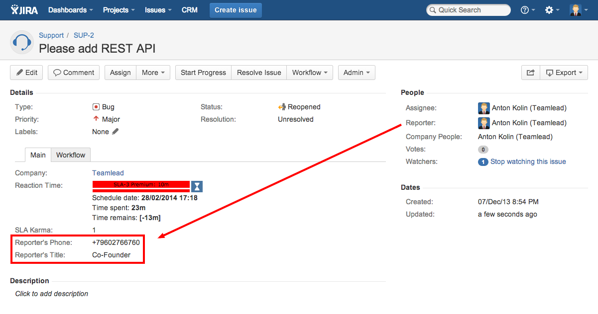 This field shows the attribute of entries from directories. For example, we can show Reporter's Phone or Company's Address or something like that: