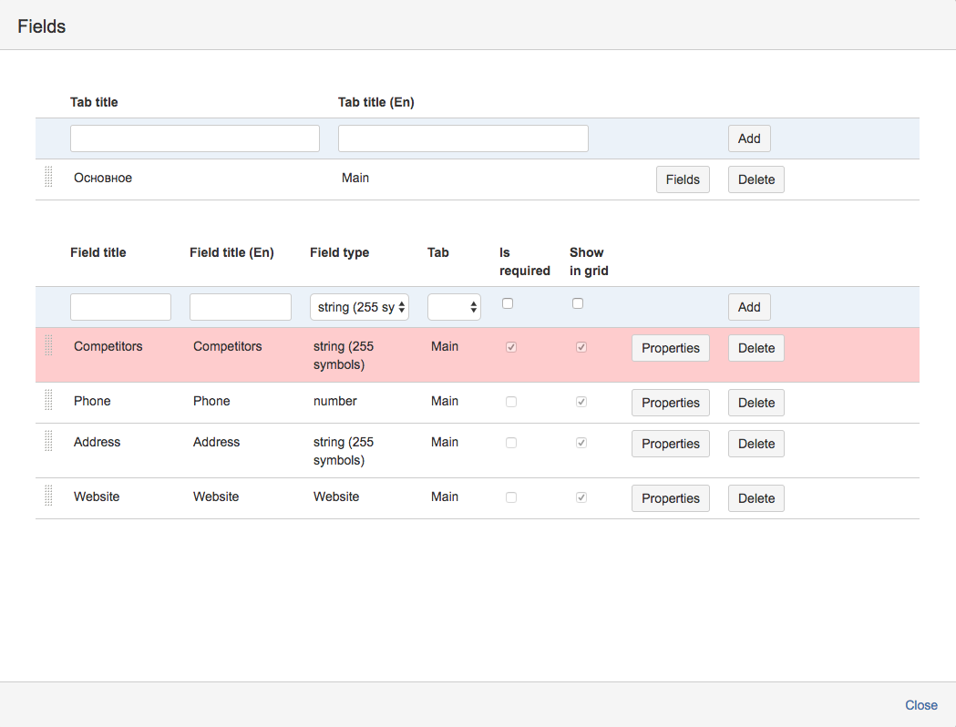 The process is the same as for creation of new Custom Directories. First create Tabs in the table above then create new fields of needed types. Don't forget to add the fields to the tabs. To set the order of the fields in the tabs in the table above select the tab and click on "Fields" button and drag'n'drop the fields in the order you want.