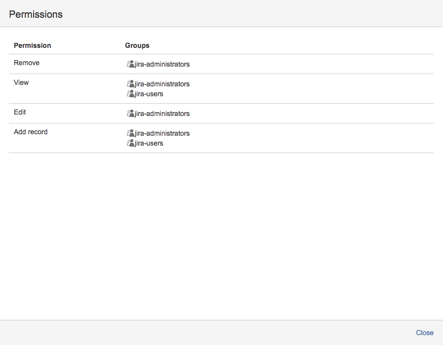Add Jira-groups for the permissions: