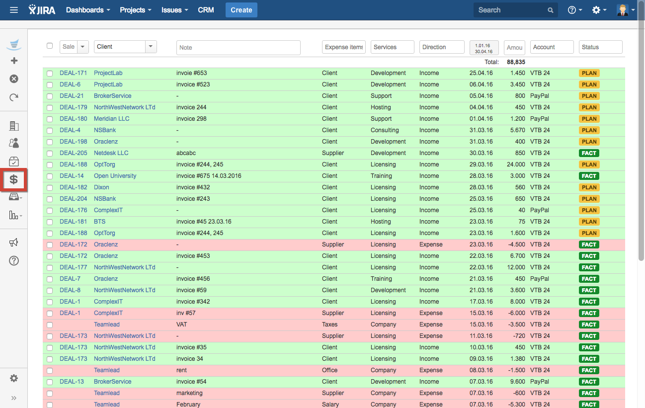 Track finance transactions inside JIRA