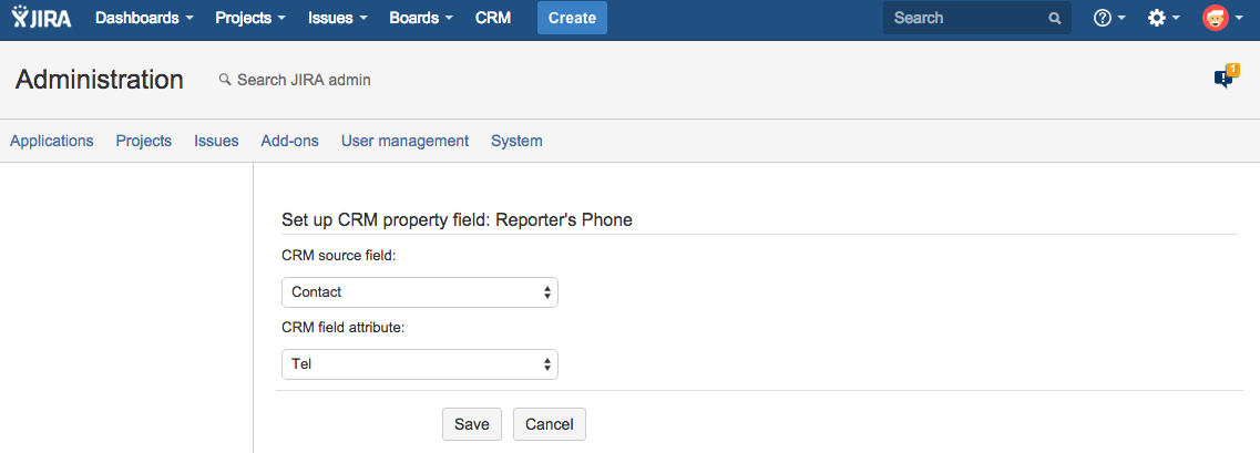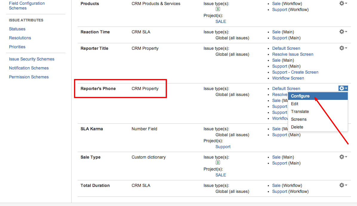 Here you must define a field attribute (you could find it in the JIRA Administration menu/Plugins/CRM):