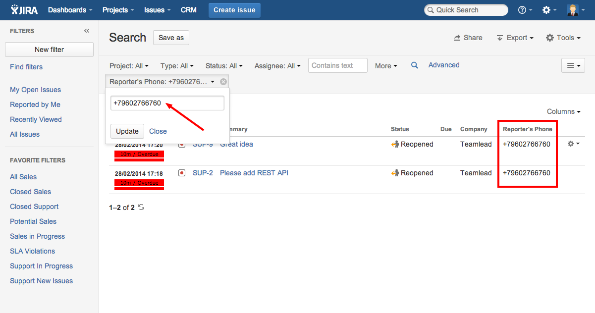 Search issues by CRM Property field