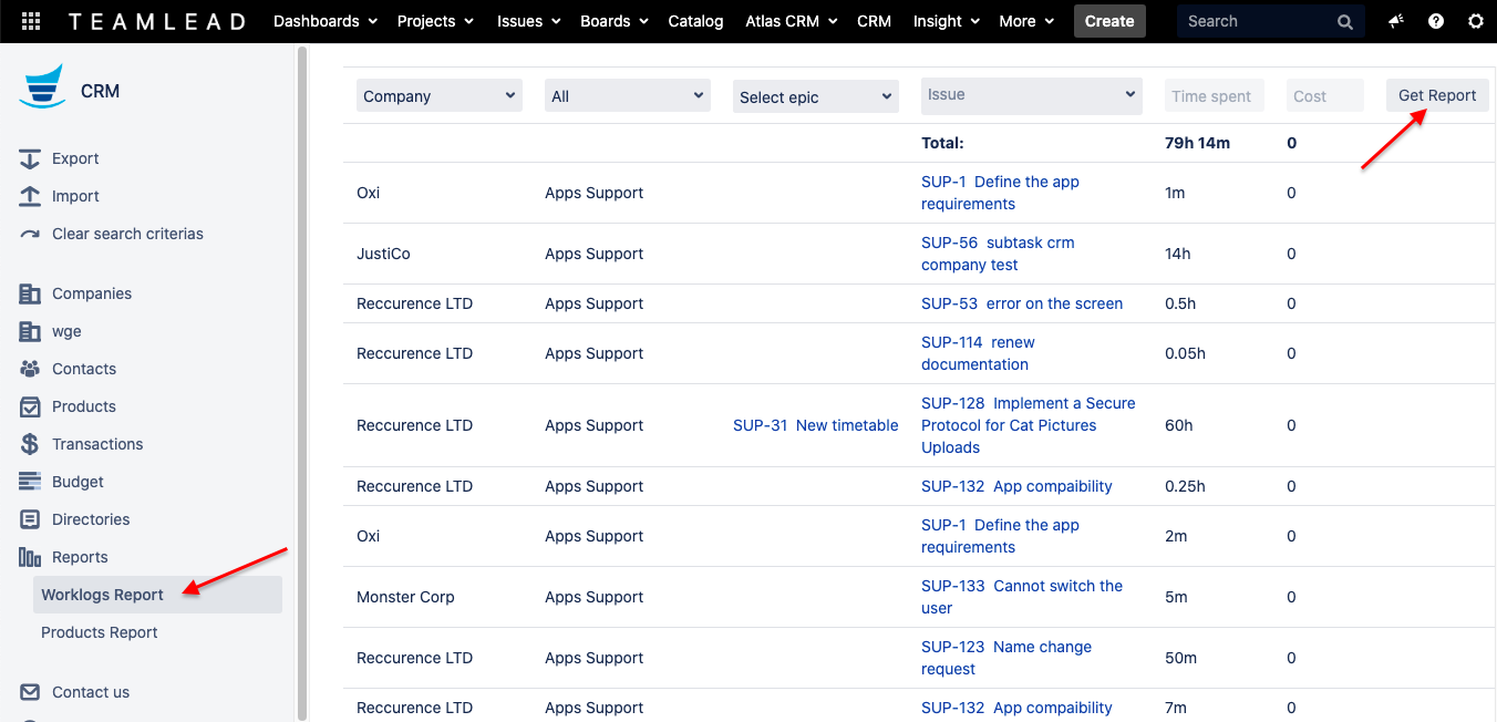 CRM Worklog Report