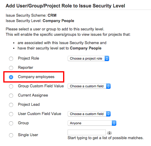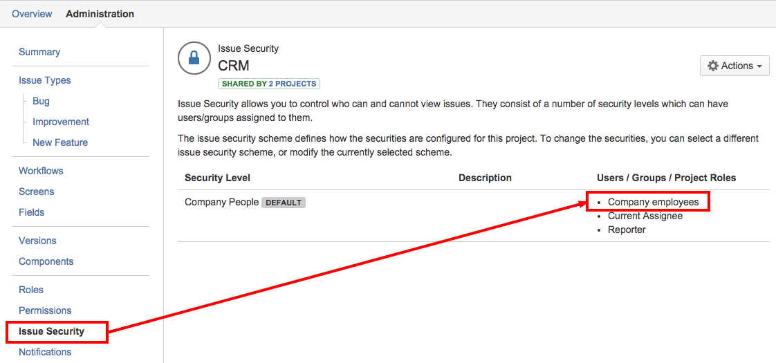 To resolve the access problem you need to add unique security level principle Company People to your Security Level Scheme: