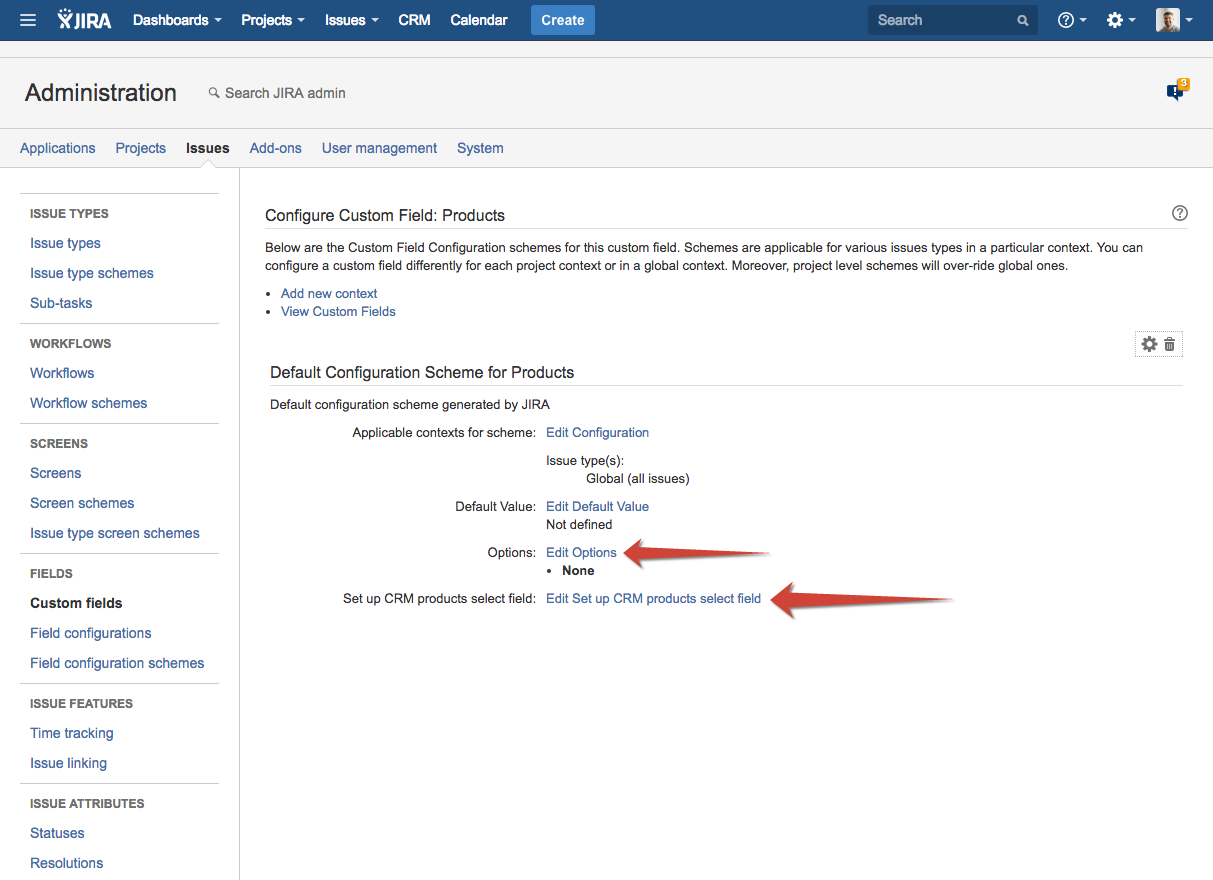 Custom field CRM Products Select allows to add one or more products from CRM Products Directory to Issue screens and to Service Desk Custom Portal. CRM Single Product Select field is the same but only one product can be selected.