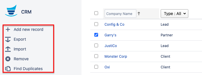 You can export & import data to CRM directories. Read more: Importing/Exporting Data