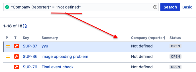 To find issues with certain Company\Contact fields values in Issue Navigator use the basic or the advanced search mode as usual.