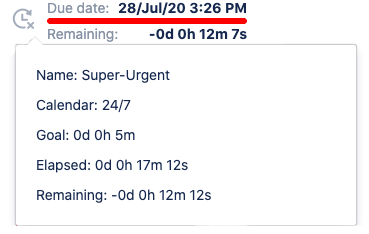 The progress bar demonstrates the elapsed time in relation to the SLA goal. The elapsed time may change color among with filling the bar according to the customizable color schemes.