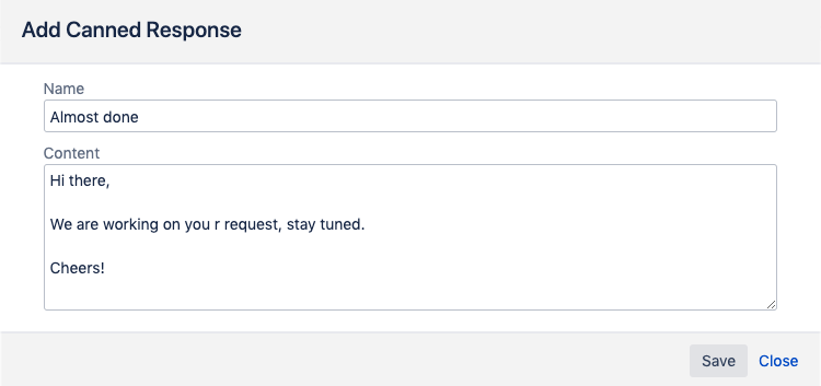 You can also edit a response (be careful if your colleagues also use it) or create a new canned response, shared with other users or your personal one.