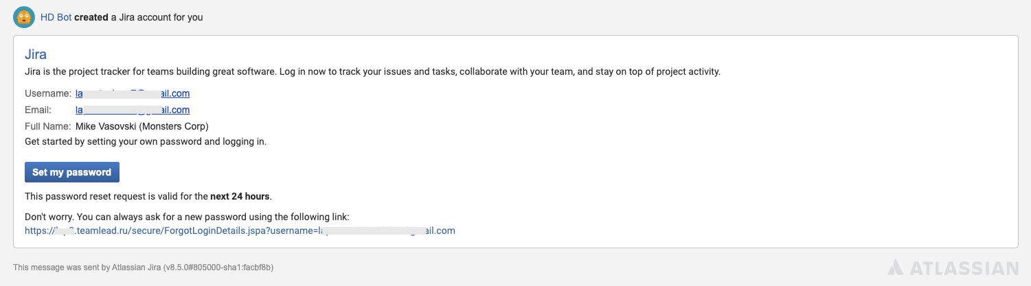 A newcomer will get the standard Jira message upon new account creation and will be able to set their password by pushing the relevant button: