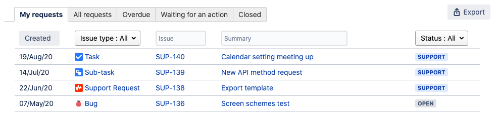 There is one more section within the Customer Area that must be set up – the Issue Tracker for your customers. It is a place a customer can browse their requests. As an admin, you can organize all requests into tabs with their own set of columns.