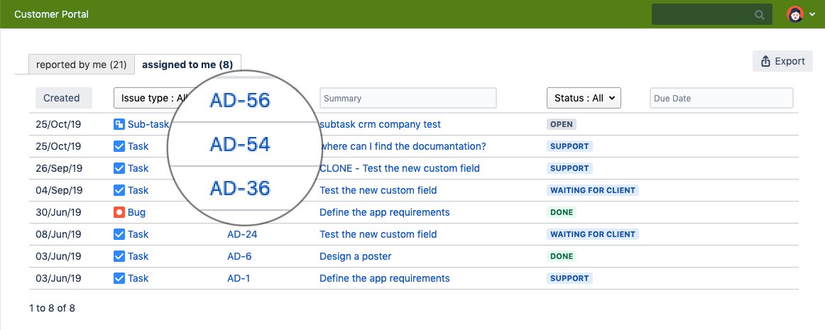 Problem: a customer does not see the issue in the My Issues list