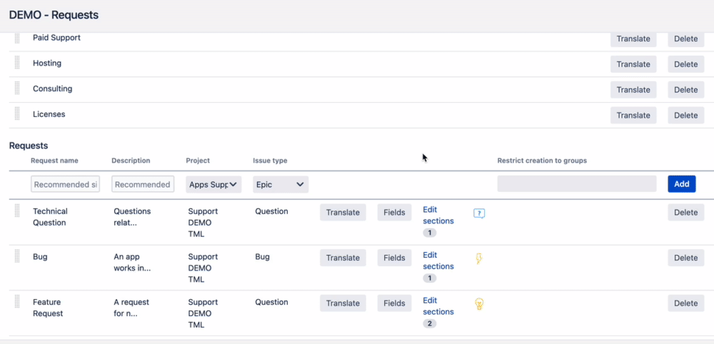 You can define how a request type will be displayed in HelpDesk. There are two variants: