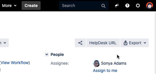 However, an agent might need to send a link to a request to a customer. There is a special button that appears in HelpDesk-specific projects. Click on this button to copy the HelpDesk issue link to the clipboard: