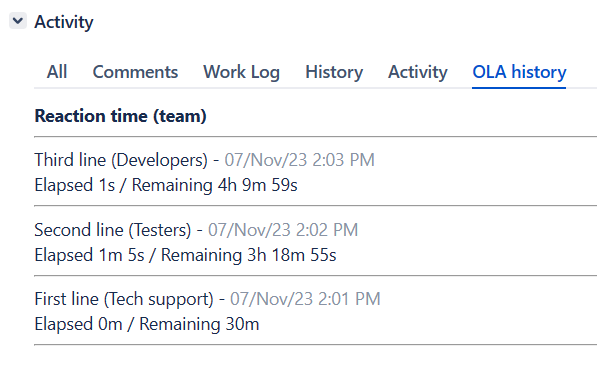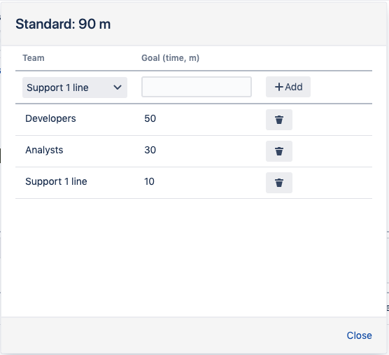 The main entity in the second-level concept is a TEAM. A team is a group of the issue resolving participants with the same responsibilities. It could be the lines of support, developers and so on. You can specify their particular goals in addition to the overall issue SLA. For example, all the first line of support is competent to do in this request can be done in 30 minutes. The remaining SLA time is only required for cases involving other teams.