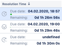 In one case you can see the due date as UNDEFINED. That means the SLA countdown is paused and the time of unpausing is unknown. For example, you are waiting for fo the information from a customer. As soon as the field countdown started, the due date will be shown.