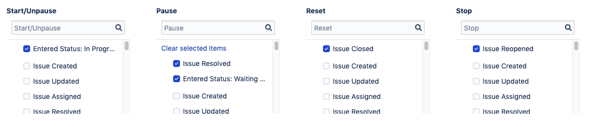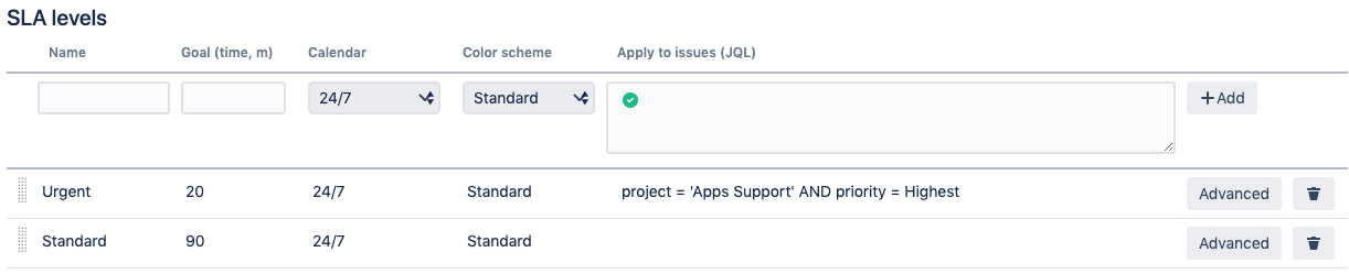 SLA levels: Goals and filters that specify the issues those goals should be applied to;