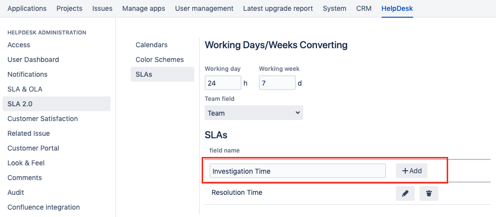 The team SLA field uses the same color scheme and work schedule and will be applied to the same issues as the parent SLA field.