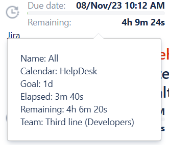 The progress bar demonstrates the elapsed time in relation to the SLA goal. The elapsed time may change color among with filling the bar according to the customizable color schemes.