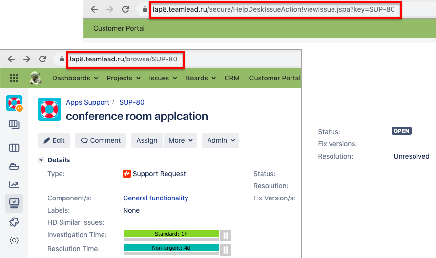 As your customers cannot access Jira, the Jirа links are not useful for them. The same issue link on the portal differs from the standard Jira link.