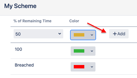 2. Select the Edit button to set up the scheme. It consists of color rules with two rules added by default for a new entry – for breached and not breached SLA. Here you can change the color of a rule or add more rules in between.