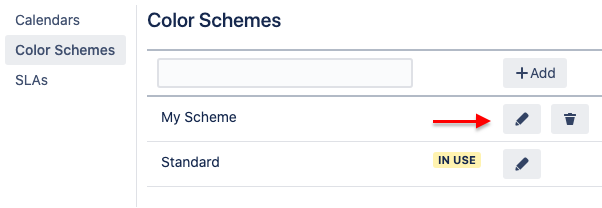 It's great to know if the entry is being used before changing it. The IN USE parameter displays if there are any SLAs using this color scheme (specifically if the scheme is selected in SLAs settings). You should change the scheme in use carefully (it will be applied to the color of the existing fields). The scheme in use cannot be deleted.