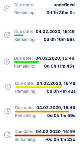 To get more visibility we can colorize HelpDesk SLA fields you can define the rules of their coloration according to the remaining time and depending on different issue conditions. For example, the field should be colored yellow when 50% of SLA time remains and orange when 15% remains in incidents and stays green up to being breached for the feature requests.