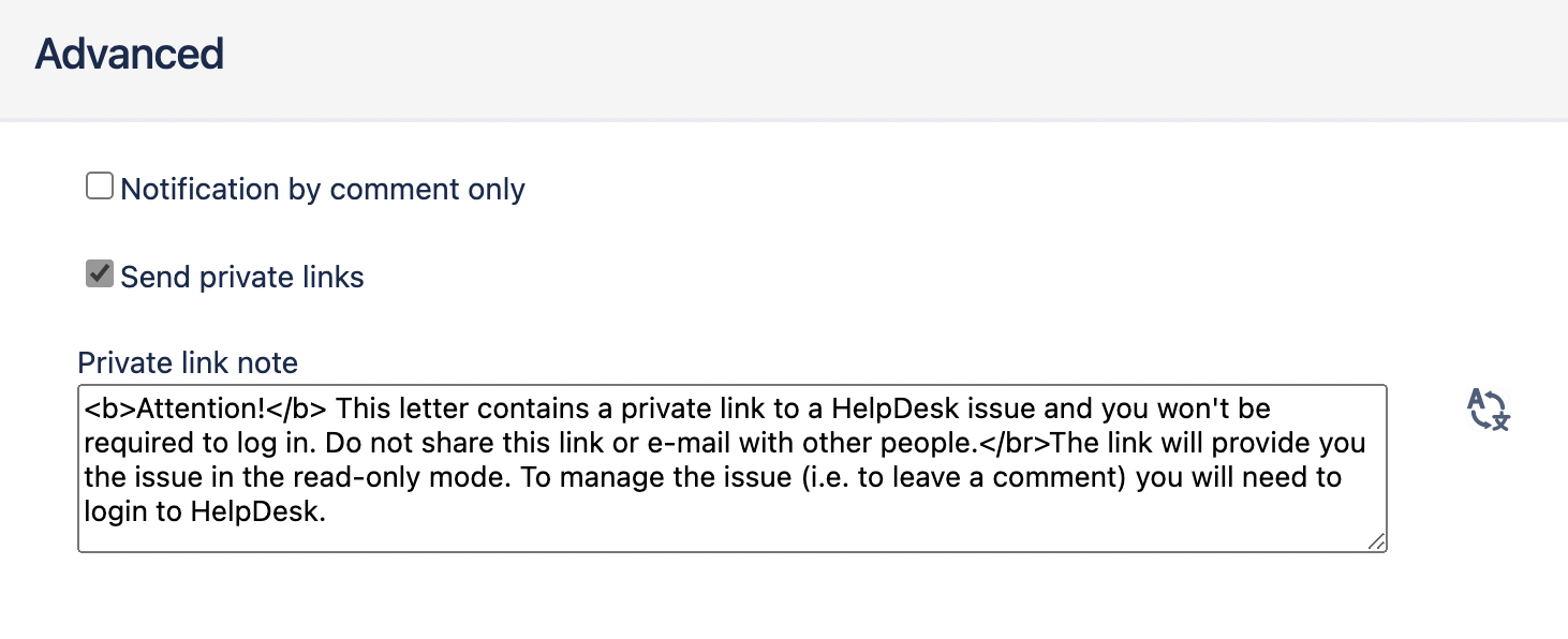 Use these settings to send the emails that contain links to HelpDesk issues (not the regular Jira links) to users with no access to Jira (Jira access will be checked automatically).