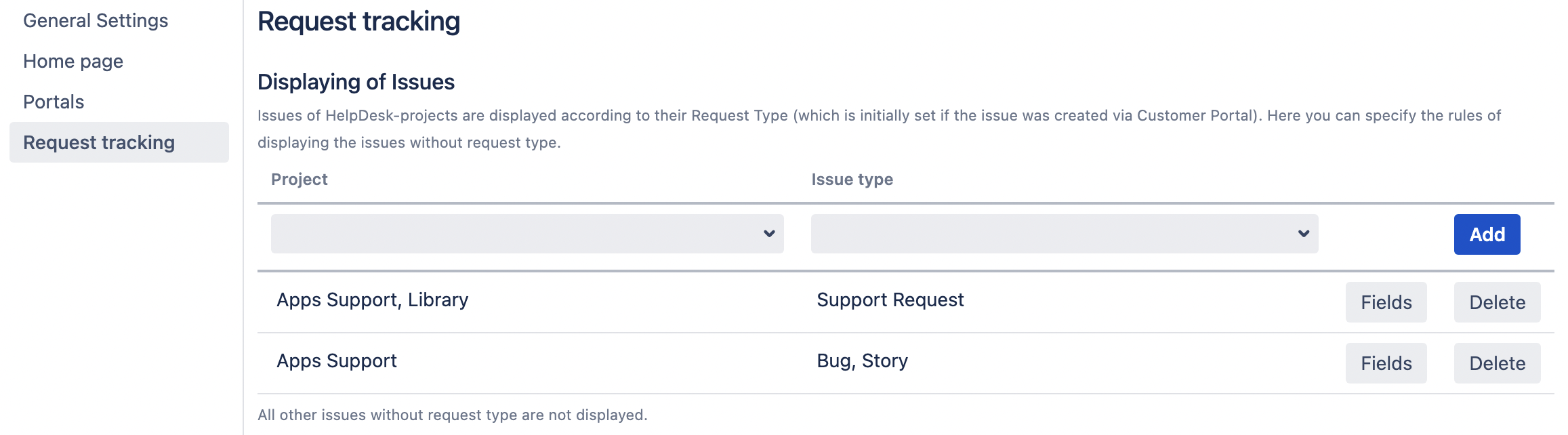 You can set how issues without request type should be displayed to customers.