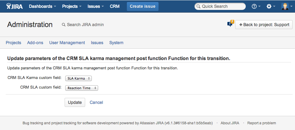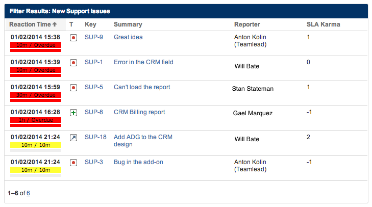 With SLA Karma we could control SLA violations by assignees. HelpDesk stores SLA Karma in the issue field (type Number). HelpDesk check violation of SLA if the assignee closes the issue (or resolves it). If there is a violation of SLA, HelpDesk stores negative points to the SLA Karma field. If there is no violation of SLA, HelpDesk stores positive points to the SLA Karma field. So, during working with issue assignees could increase or decrease points. We could track if an issue will has a negative SLA Karma value.