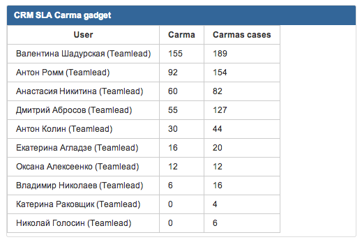 We should add SLA Karma field to any JIRA Gadgets, something like that: